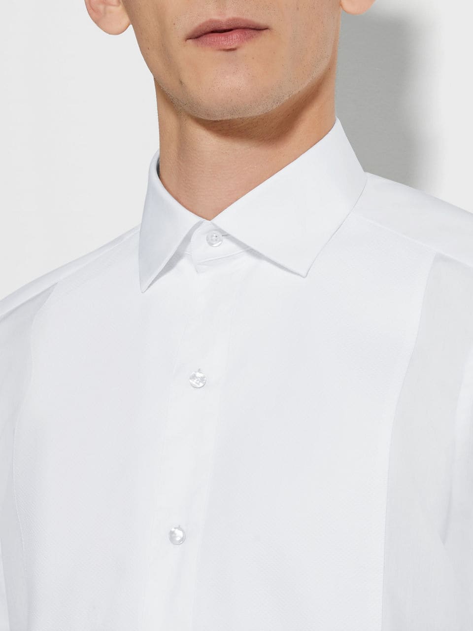 ZEGNA OPTICAL WHITE COTTON TUXEDO SHIRT